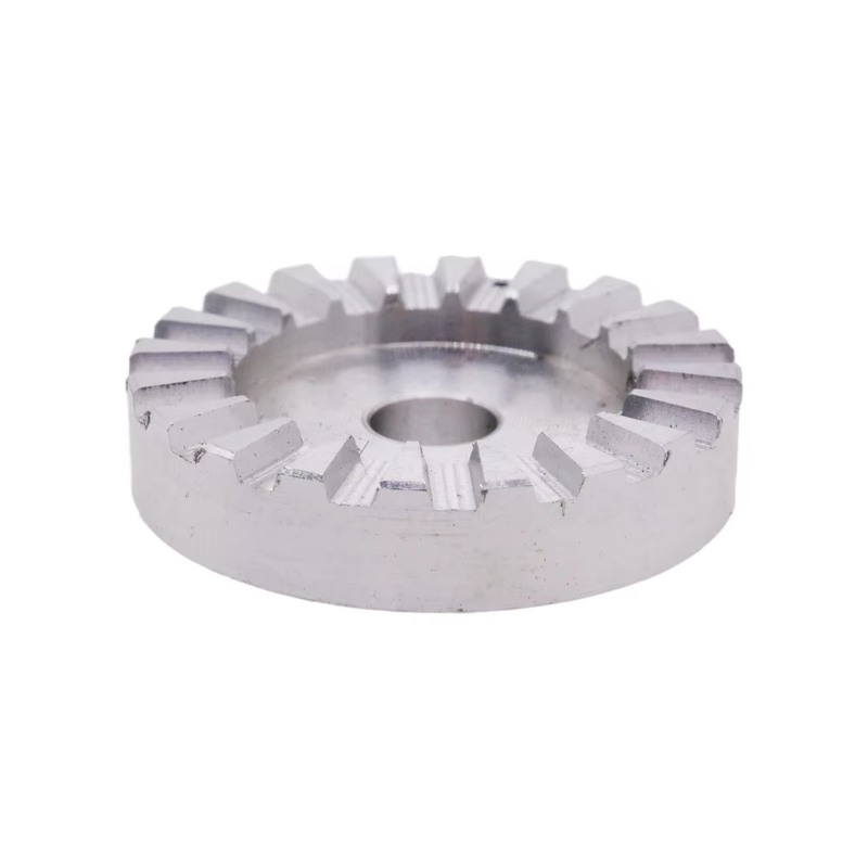 This precision-engineered mechanical component is manufactured from high-grade aluminum using advanced CNC turning technology. It features a circular disc form, combining gear-like transmission functionality with integrated structural elements for mounting or positioning, making it suitable for various mechanical drive systems and equipment assemblies.