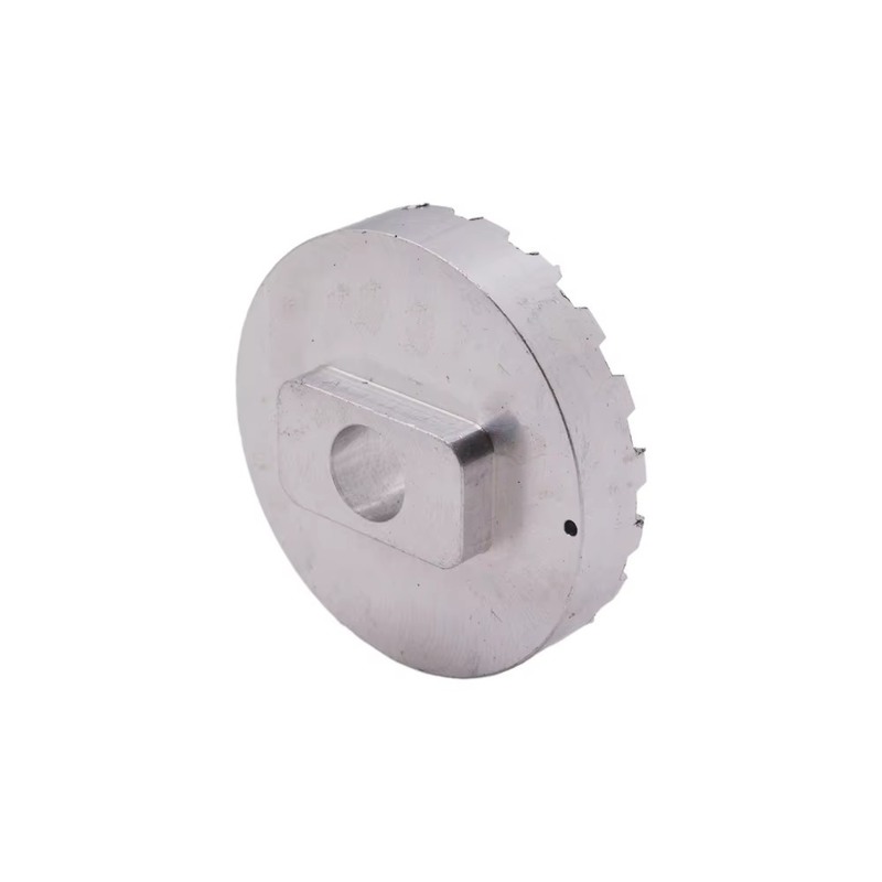 Custom CNC Turned Aluminum Disc Gear Component With Peripheral Teeth And Central Rectangular Mount – Precision Part For Mechanical Power Transmission