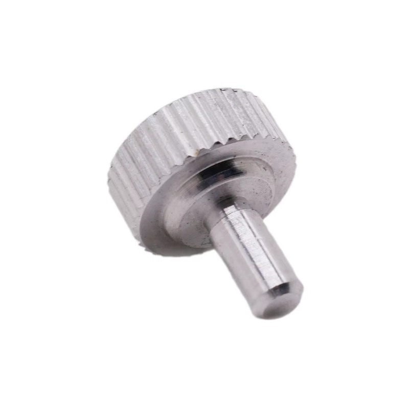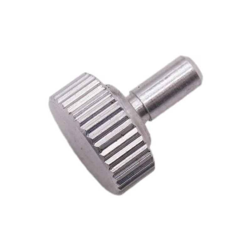 The main body of the screw features a circular disc-shaped knob with uniform vertical knurling around the perimeter. This textured surface enhances manual grip and friction, allowing for comfortable hand-tightening or adjustment without slipping—even in oily or wet environments.